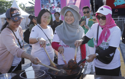 AmpenanNews. Ketua Tim Penggerak PKK Provinsi NTB, Hj. Niken Saptarini Widiyawati, ikut meriahkan beberapa rangkaian Lombok Food Festival Vol.2. Dintaranya Fun Walk dan Masak Besar 2500 porsi Ayam Rarang.